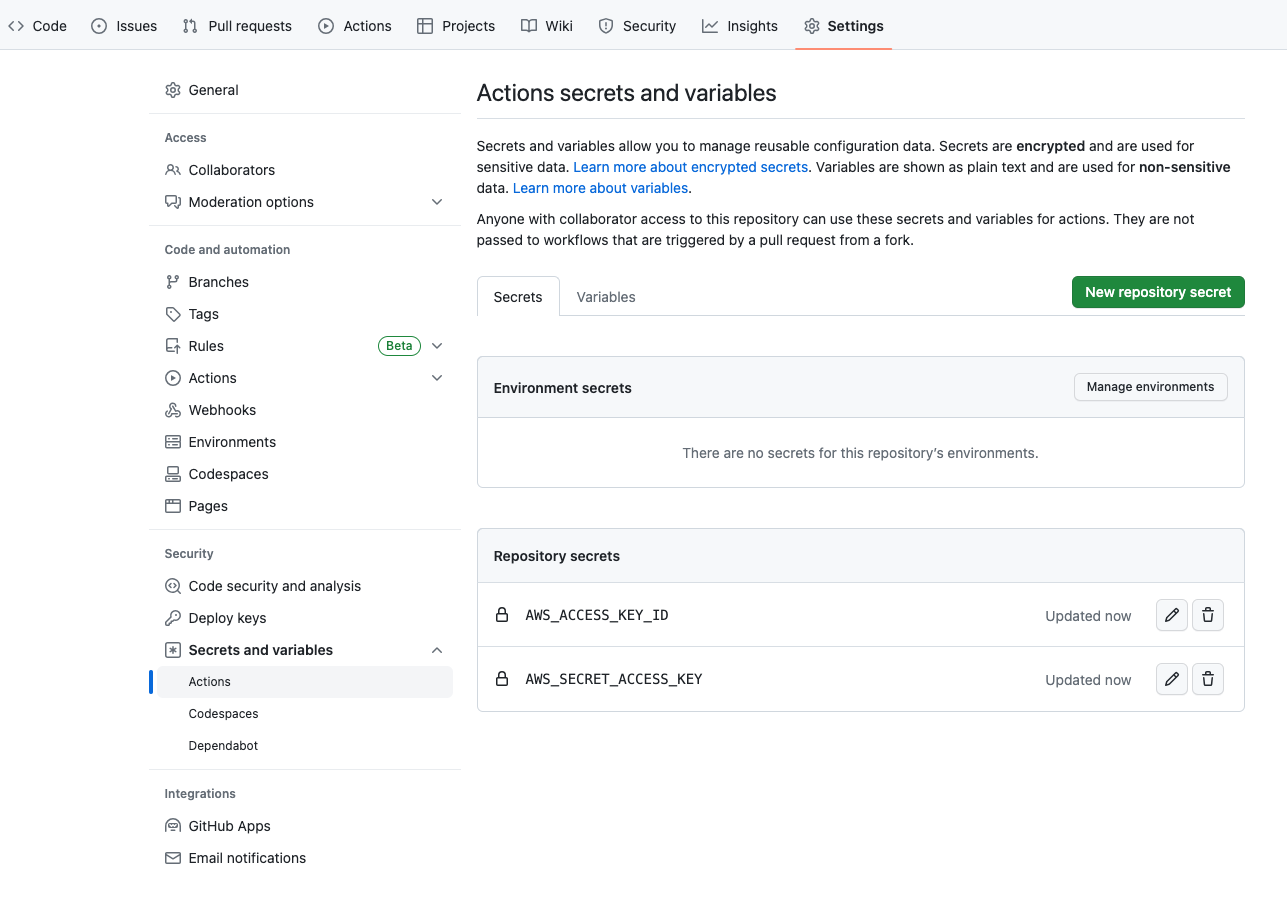 이제 사전 작업은 모두 완료되었고 Github Actions 워크플로우만 작성하면 된다.