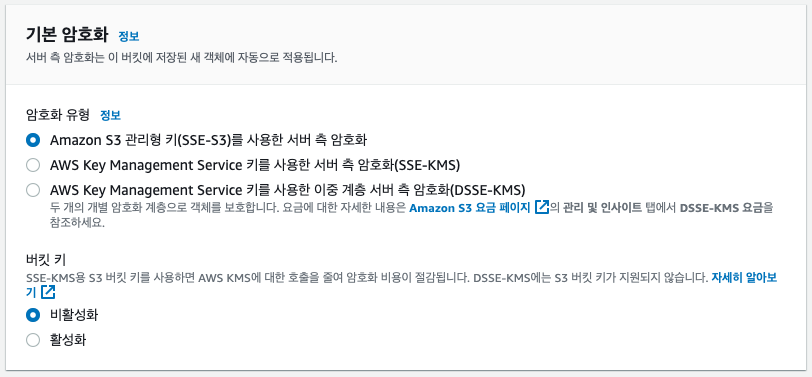 3.1.2. 액세스, 버킷 버전, 기본 암호화