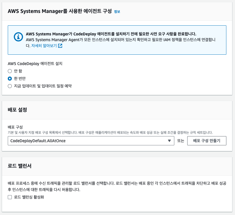 나머지 설정은 지금 당장 중요한 설정은 아니니 다음과 같이 설정하고 배포 그룹을 생성하자.