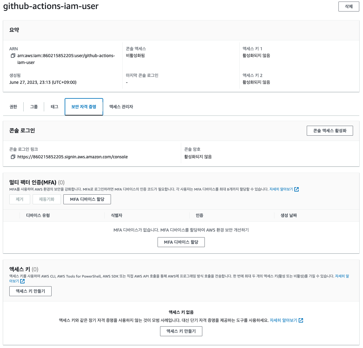 5. Githhub Actions에서 사용할 IAM 사용자 추가