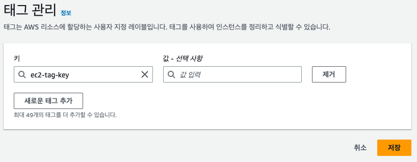 이전에 인스턴스에서 태그를 추가하였기 때문에 추가한 태그를 선택한다.