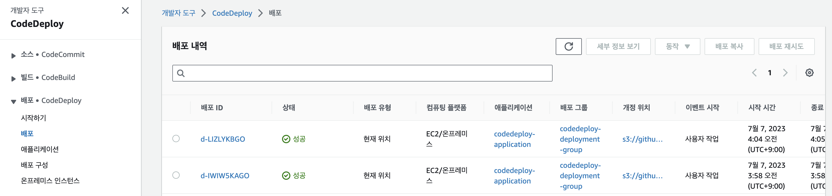 - AWS CodeDeploy 실행 후 S3에 있는 코드를 EC2에 배포
